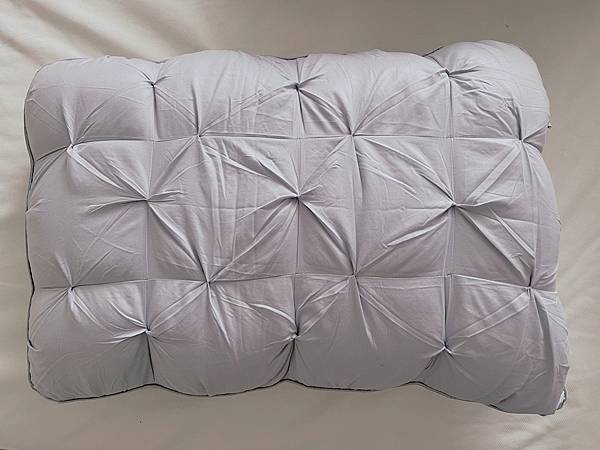 再加上表面有手工紐花造型增添蓬鬆,枕頭整體高度20公分高不易扁塌,適合多數人的睡眠高度。