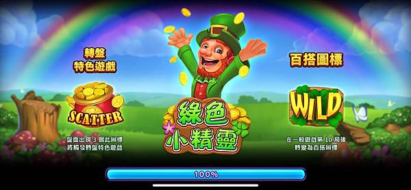 綠色小精靈 玩法分享: 盤面出現3個「SCATTER」圖標將觸發轉盤特色遊戲、「WILD」圖標在一般遊戲第10局後將轉變為百搭圖標
