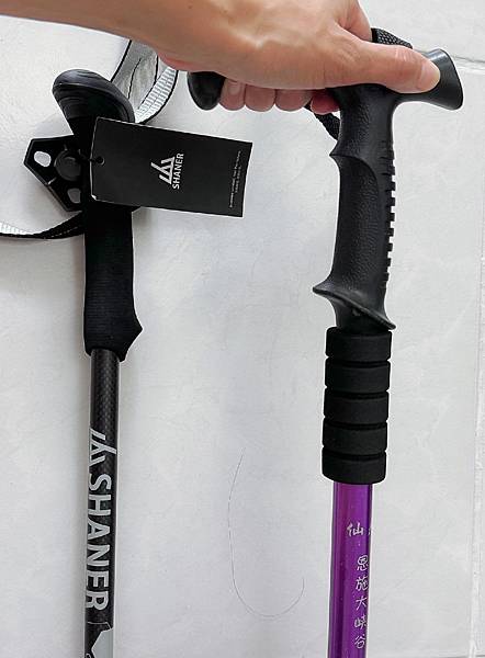 我用這支登山客指定的SHANER 山人 碳纖維伸縮自拍登山杖。